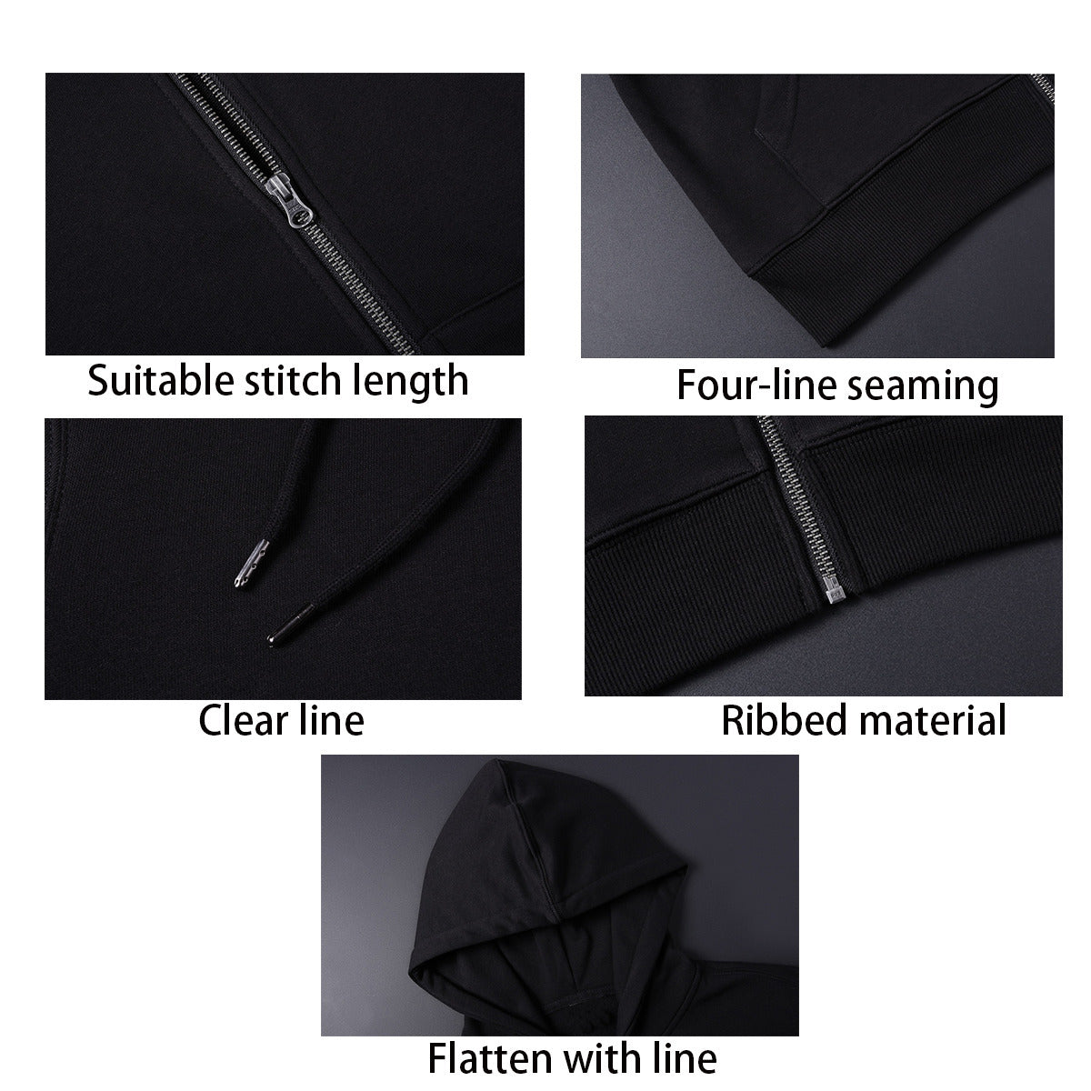 - Drawstring hood, zipper, long sleeves, front kangaroo pocket