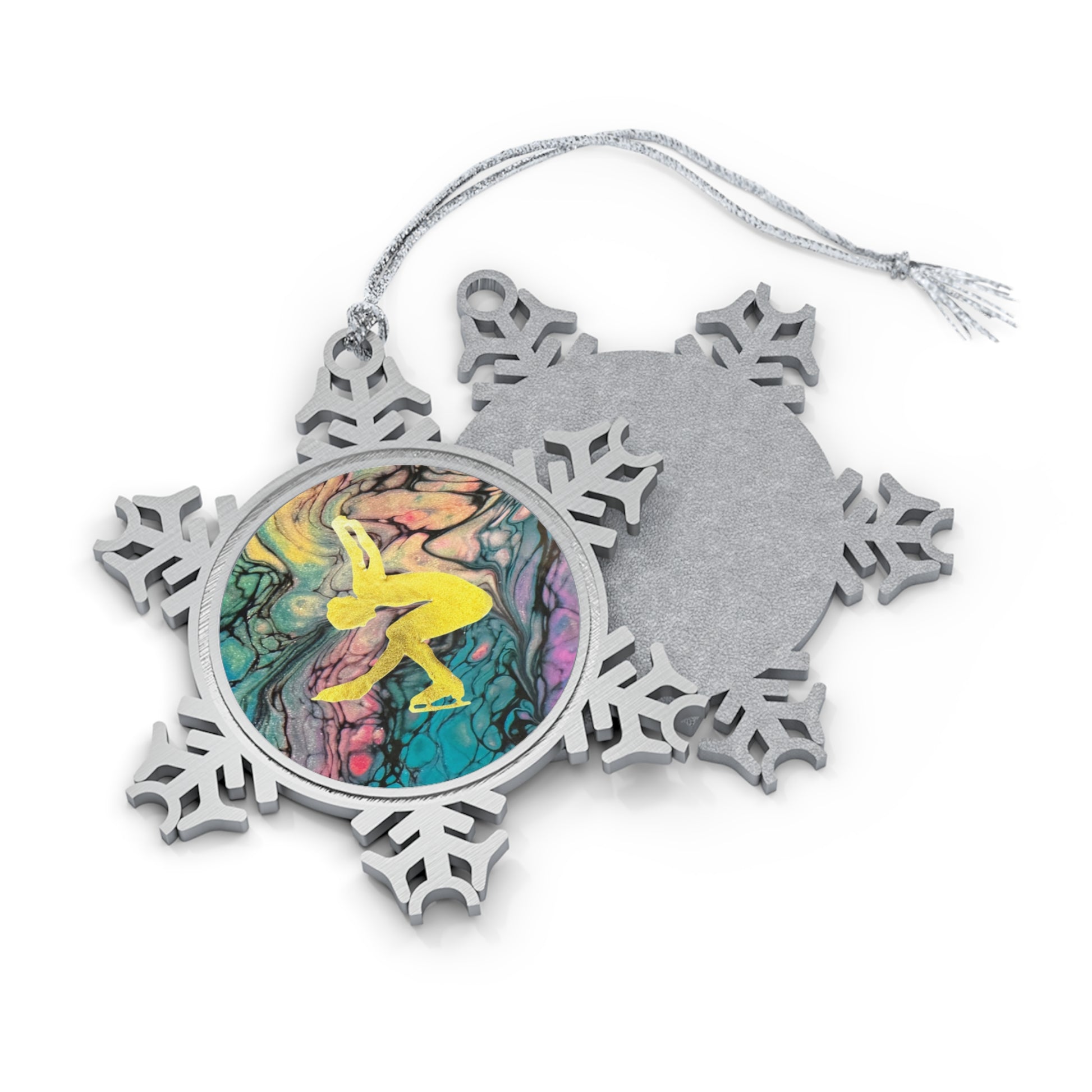 Figure skating pewter ornament that adds a touch of elegance to your holiday decor. Perfect for figure skating enthusiasts or as a thoughtful gift for skaters. Ideal for Christmas, winter celebrations, or figure skating competitions.